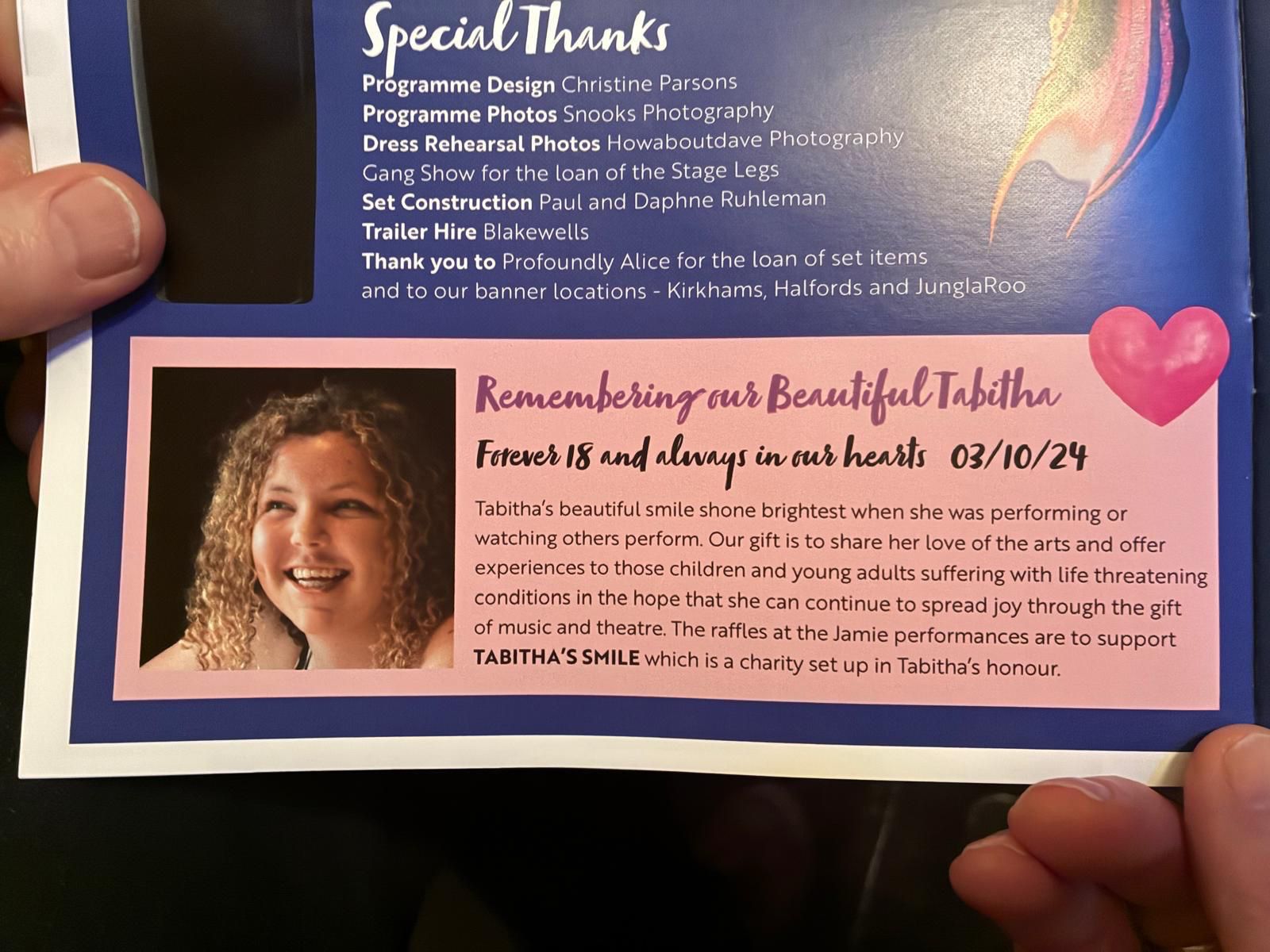 Tabatha’s Smile is a newly established charity dedicated to bringing uplifting theatre and music experiences to young people aged 15 to 25 who are undergoing treatment for cancer or other life-limiting illnesses.