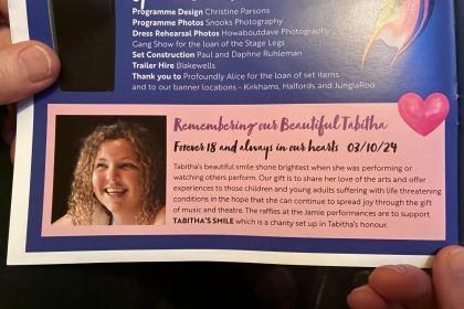 Through his hard work, dedication, and generosity, Jake raised an amazing £813 to help bring theatre and music experiences to young people aged 15 to 25 who are in treatment for cancer or life-threatening illnesses — continuing Tabatha’s legacy of light, laughter, and joy.